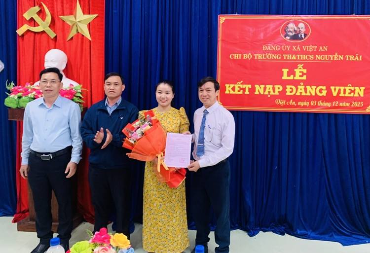 CHI BỘ TRƯỜNG TH&THCS NGUYỄN TRÃI TỔ CHỨC LỄ KẾT NẠP ĐẢNG VIÊN MỚI